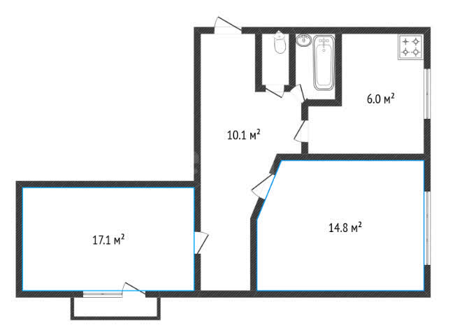 * Oбщaя площадь – 51 кв.м