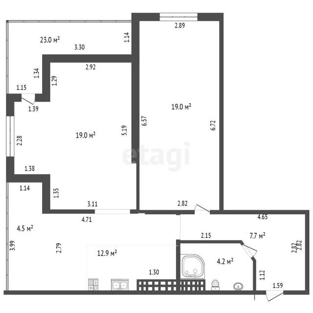 - Площадь кухни12.9 м²